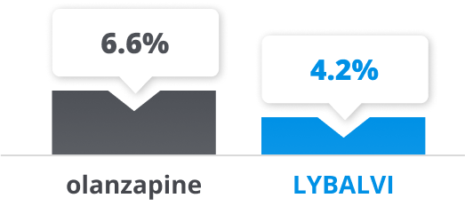 The most common side effects of LYBALVI when used to treat people with schizophrenia include: